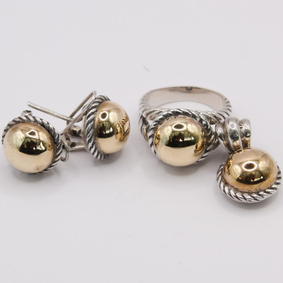 This striking jewelry set, featuring a bold ring, pendant, and earrings, is meticulously crafted in 925 sterling silver and richly accented with 14k gold. With a substantial weight and a design full of presence, each piece radiates strength and luxury. Perfect for those who love statement jewelry, this set embodies elegance, power, and timeless sophistication.
